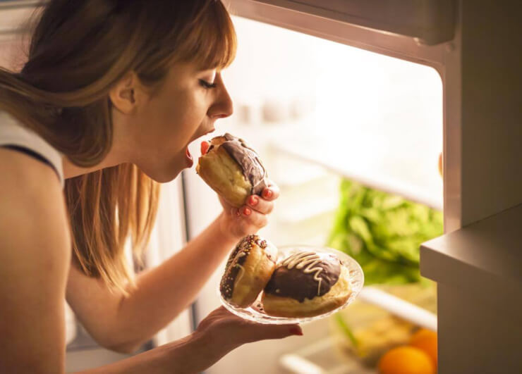 Основное проявление булимии – это нарушение питания, которое сопровождается приступами, переедания. В момент употребления еды происходят потеря контроля, и человек съедает огромные порции, которые значительно превышают настоящие потребности в пище.